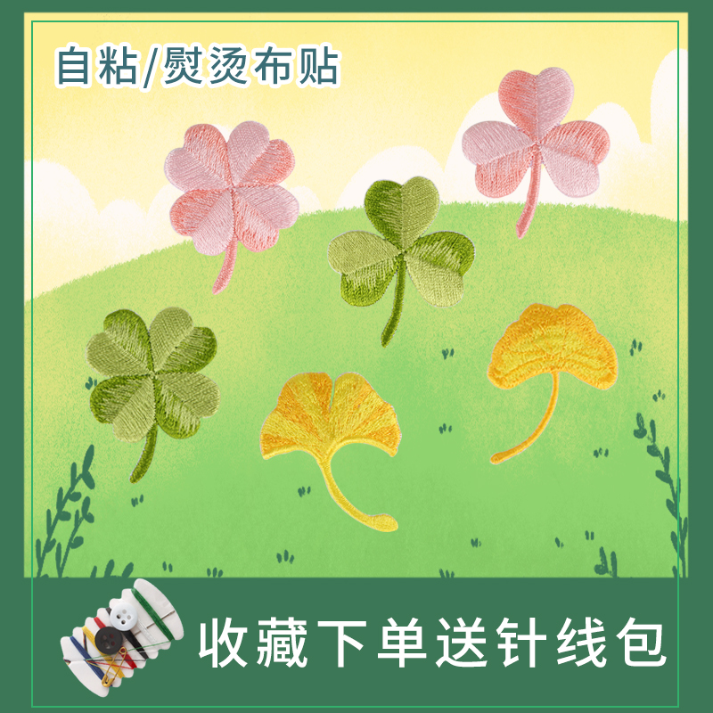 饰修补小洞心形贴花 子装 刺绣桃心补丁贴布 衣服裤 幸运草布贴自粘