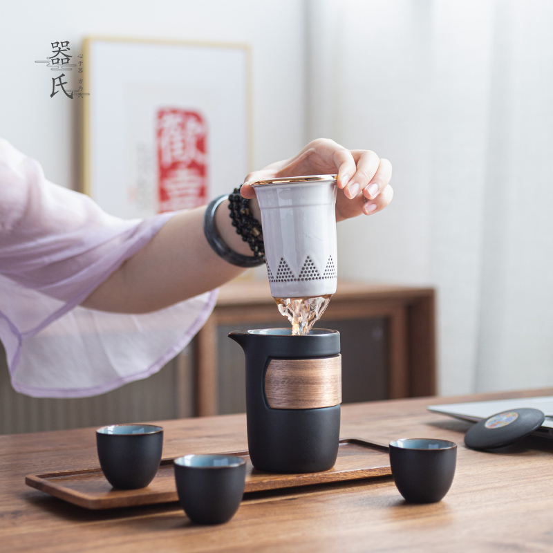 快客杯一壶露营陶瓷便携旅行茶具套装 功夫户外泡茶壶出差旅游茶杯