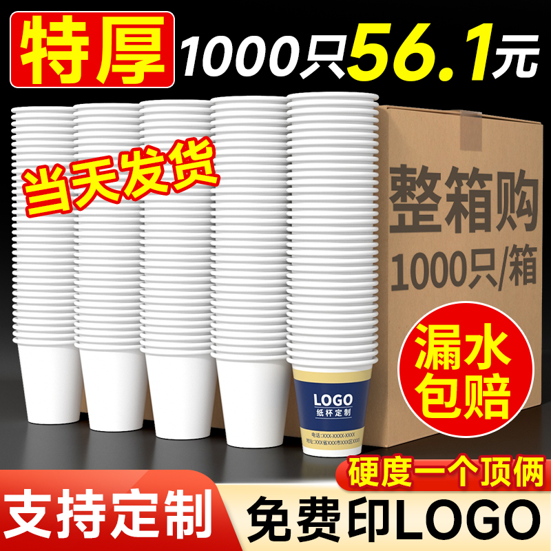 一次性纸杯子水杯家用商用加厚食品级纯白色批发定制印logo整箱装