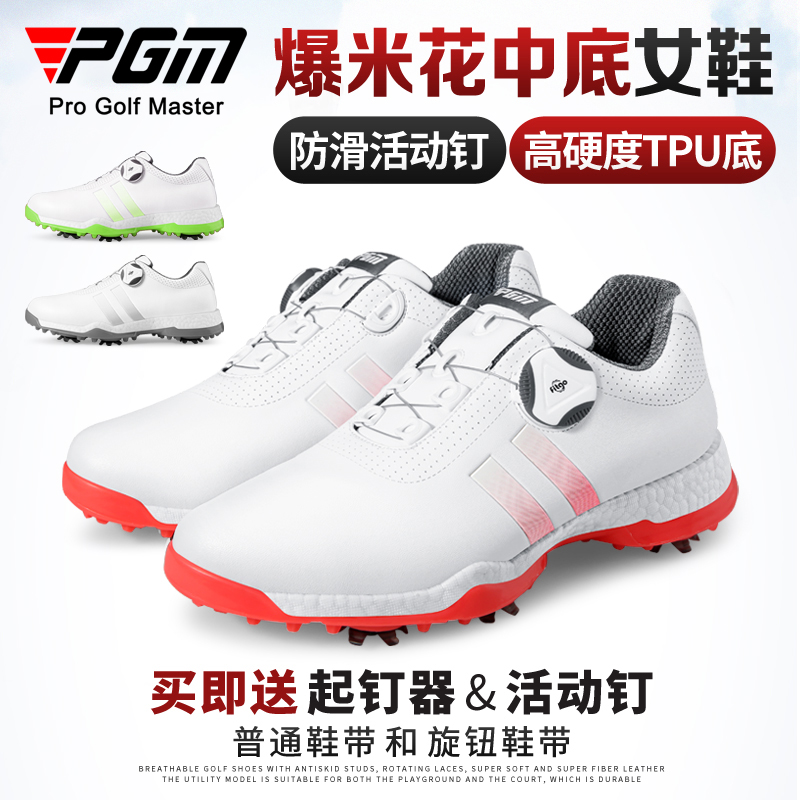 活动钉运动鞋 高尔夫女球鞋 女款 带爆米花女鞋 子 女士防水防滑旋钮鞋
