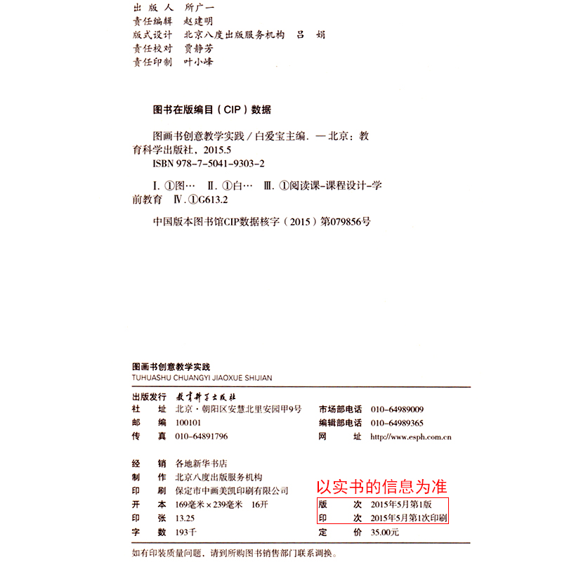 教育科学出版 社图画书创意教学实践白爱宝中小学教辅教育理论教师用书教育理论教育主张育儿图书幼儿园课外书文教学龄前儿童畅销书