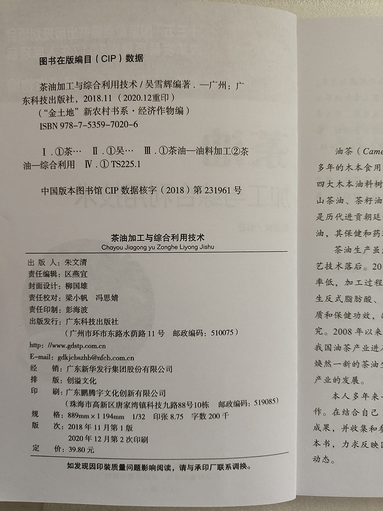 茶油加工技术油茶籽 茶油压榨茶油精炼提取工艺技术设备书籍 采摘时间及采后处理茶油生产加工制备工艺技术