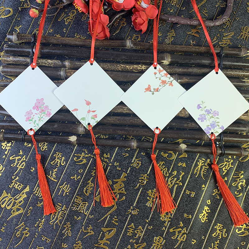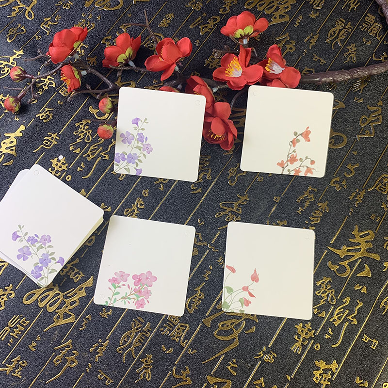 小清新方形植物小卡片书签diy材料包小学古典中国风精美水彩自制古风学生用纸质简约文艺儿童空白书法硬卡纸