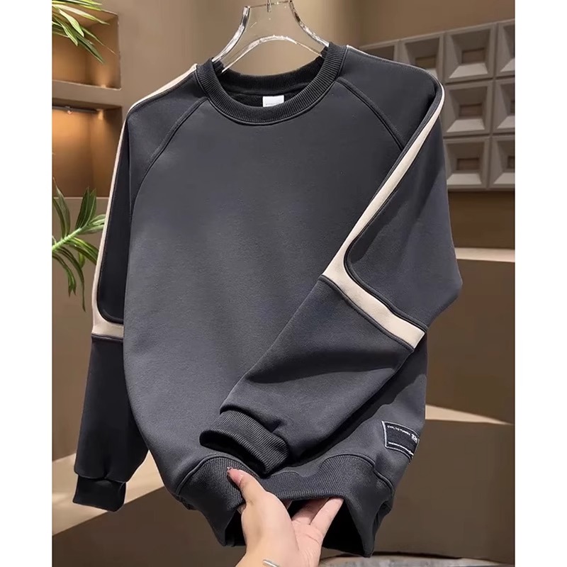 套头打底 2024秋冬加绒宽松圆领长袖 美式 休闲复古撞色拼接卫衣新款