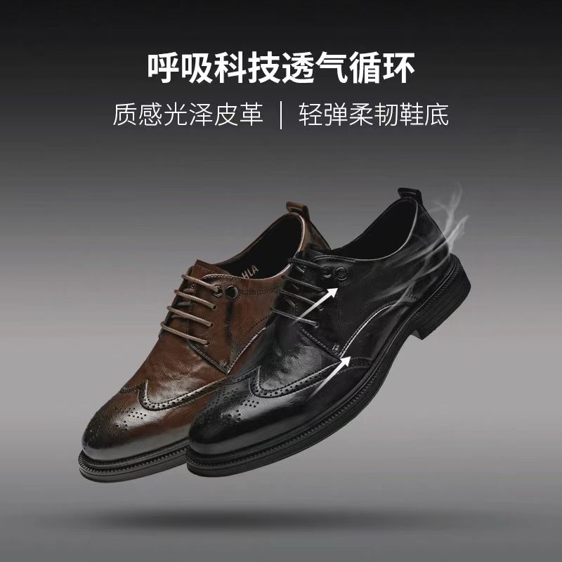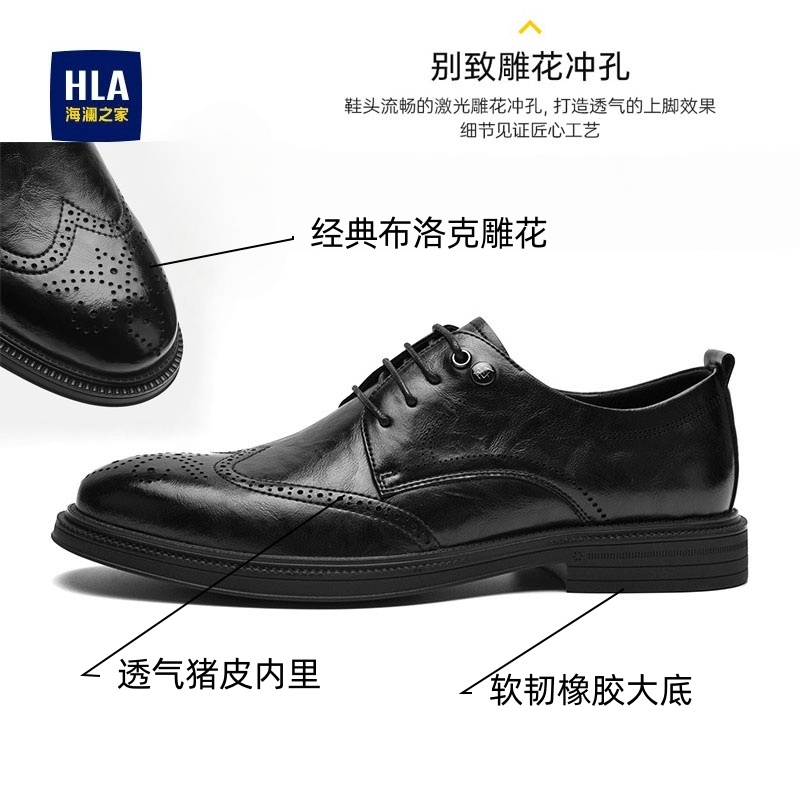 公务 德比鞋 面试 商务布洛克真皮内增高皮鞋 正装 海澜之家男鞋