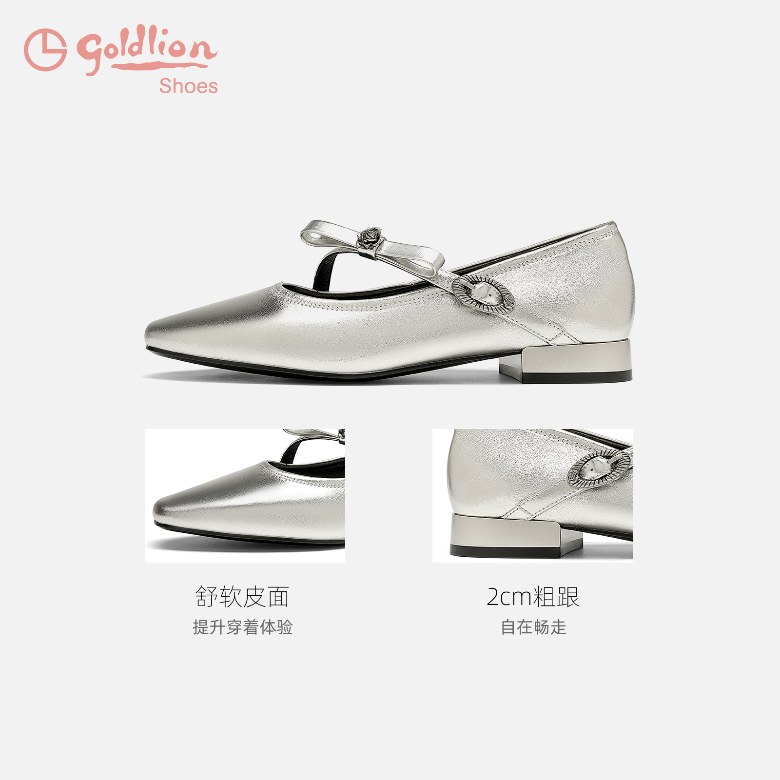 玛丽珍鞋 复古银色真皮浅口低跟单鞋 女2025春季 女鞋 新款 金利来法式