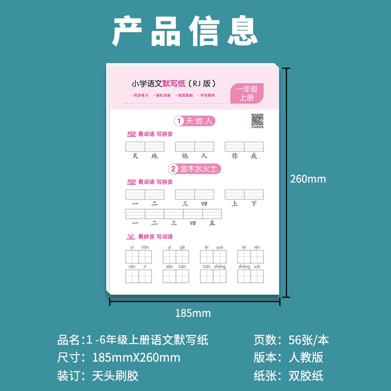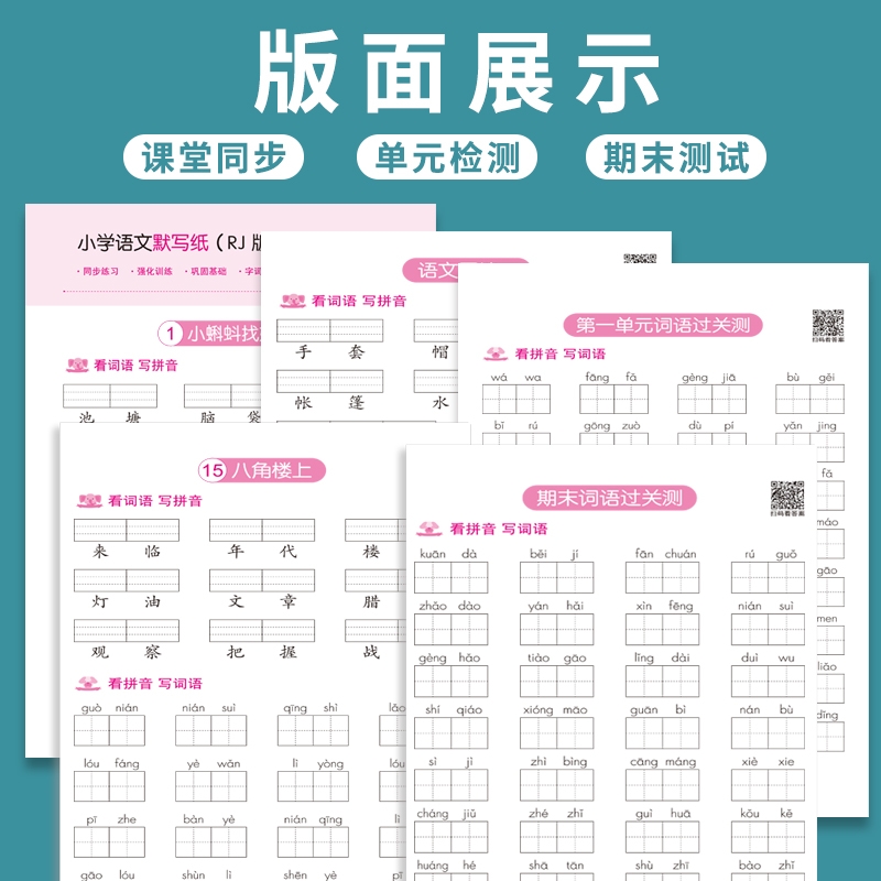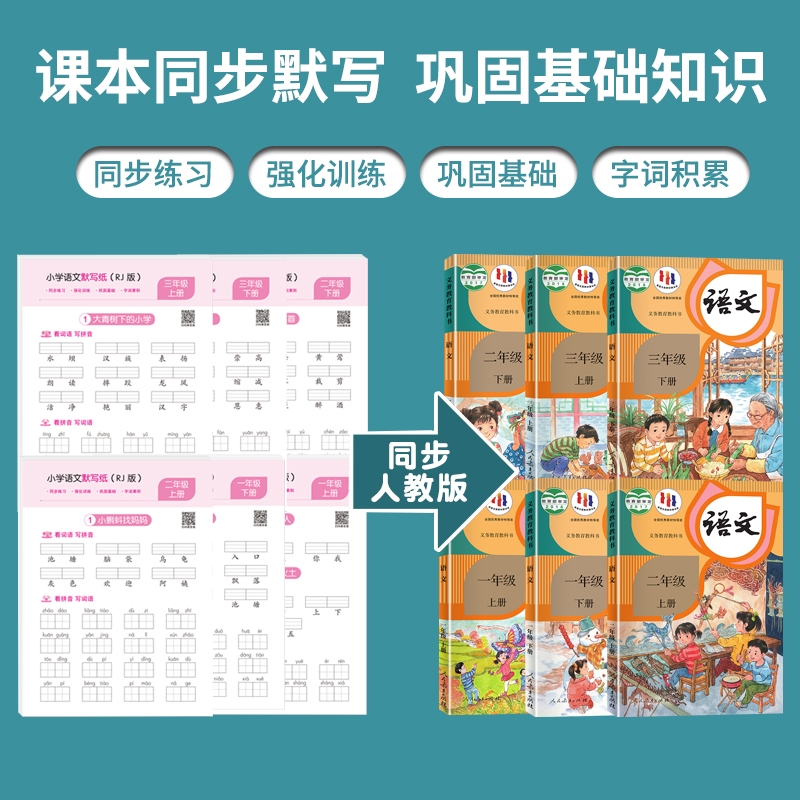 小学语文默写纸一年级二三年级上下册看拼音写词语生字注音练习册小学生默写能手人教版 同步汉语拼音描红练字本字帖练字帖每日一练