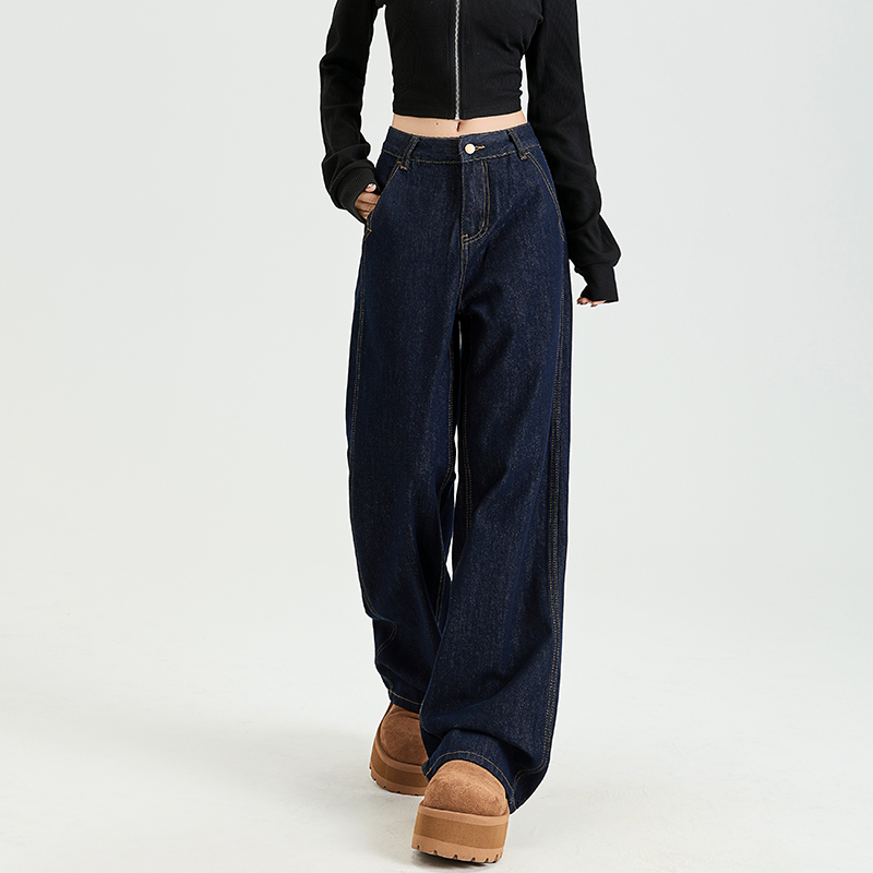 直筒拖地裤 热风直筒牛仔裤 深色水洗美式 阔腿薄绒牛仔裤 2025年秋款