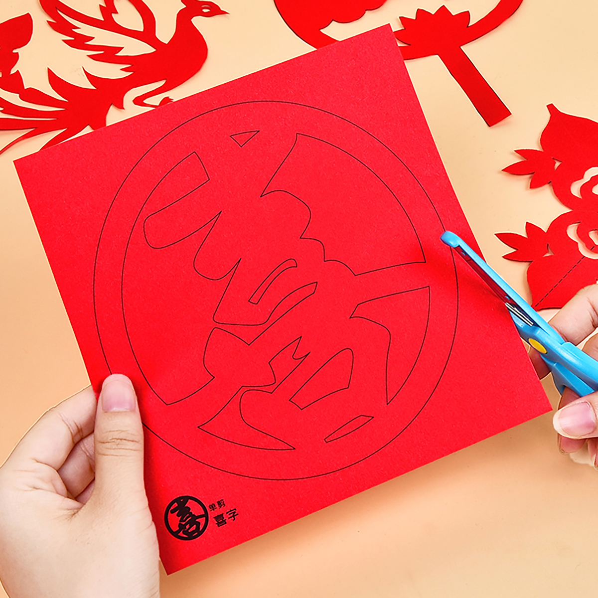 窗花剪纸春节手工剪纸儿童折纸红喜字新年中国风图案底稿材料包幼儿园半成品2025元 旦diy小学生制作工具套装