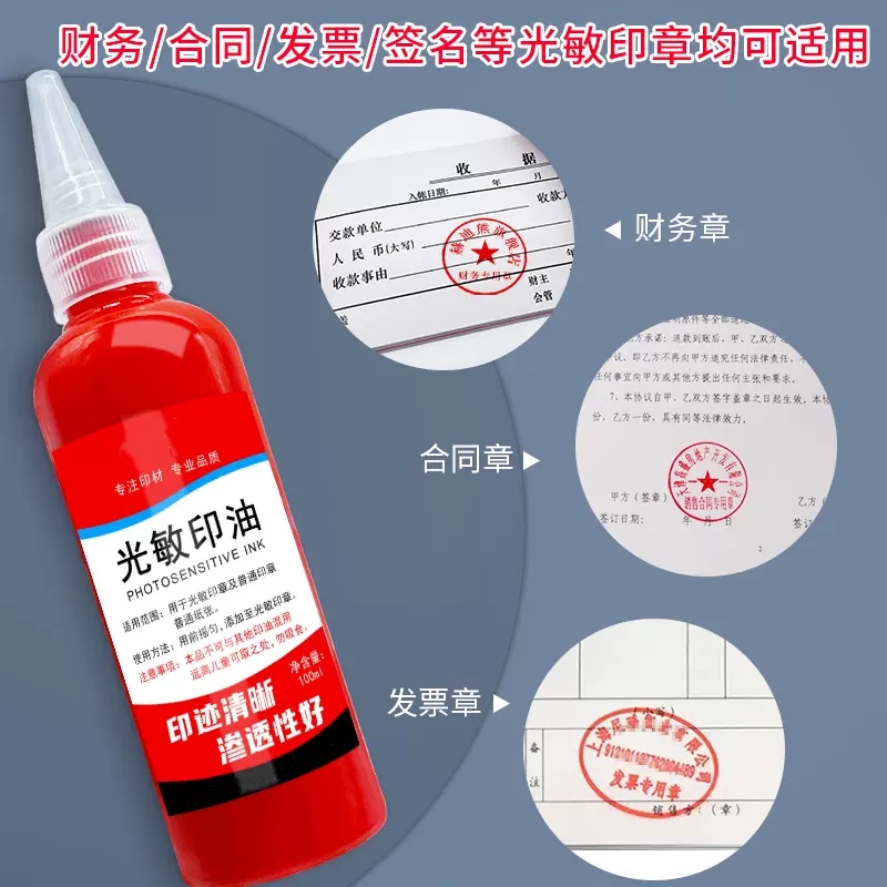 光敏印油红色印泥专用油快干大瓶100ml盖章速干墨水印章加印油 印台油墨印泥补充液原子印油黑色印油蓝色应油