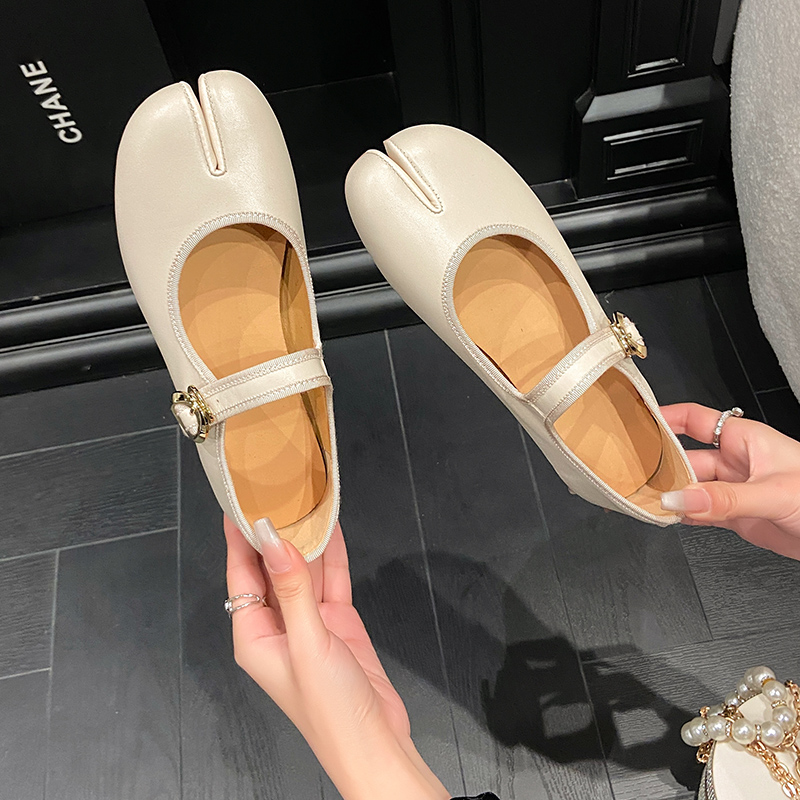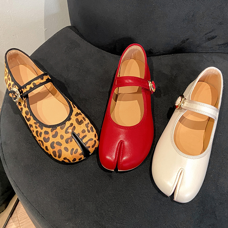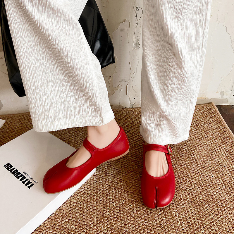 女 平底单鞋 英伦风重工牛皮手工水洗分趾鞋 女软底双带玛丽珍芭蕾鞋