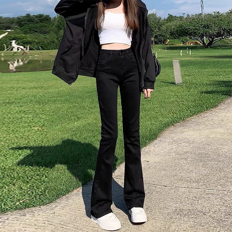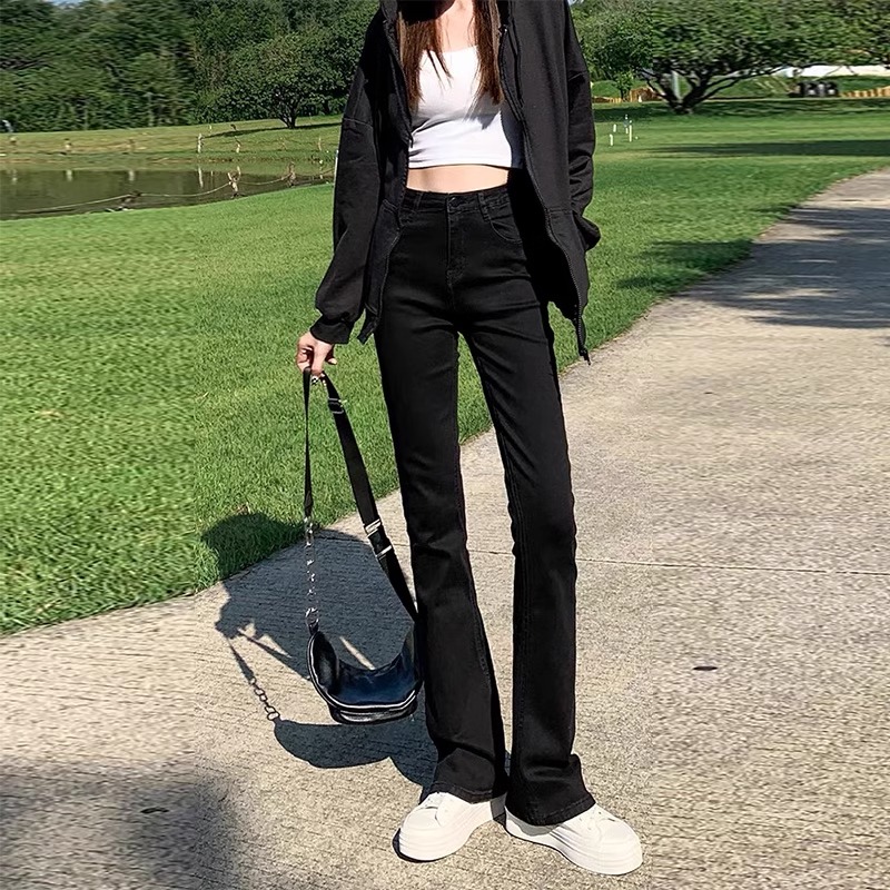 双扣高腰显瘦阔腿长裤 宽松直筒裤 女春秋新款 KZH真维斯黑色牛仔裤
