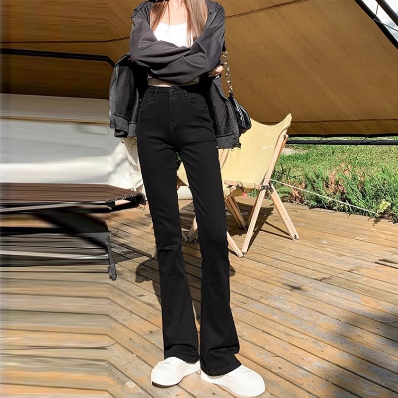 小个子毛边高腰弹力显瘦九分直筒阔腿烟管裤 牛仔裤 女2024秋冬新款