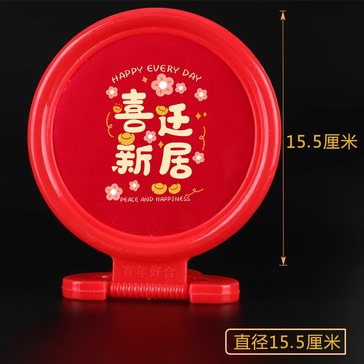 老式 台镜红色新屋挂镜乔迁之喜搬家新居新房红镜子家用 塑料壁挂式