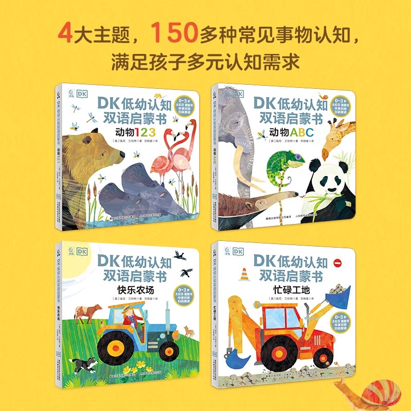 DK低幼认知双语启蒙书全4册 中英双语宝宝启蒙婴幼儿童故事绘本早教书0 认数字 农场和工地4个主题 4岁启蒙认知读物 字母 正版