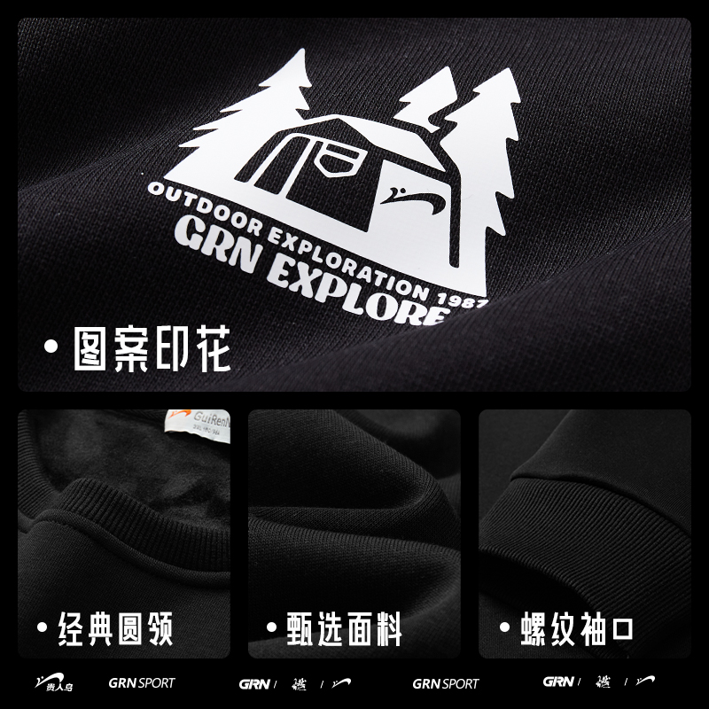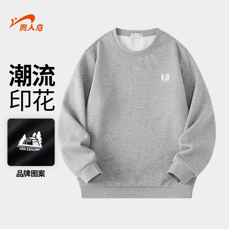 套头衫 t恤男士 情侣休闲上衣服 长袖 贵人鸟加绒卫衣男2025年春秋季