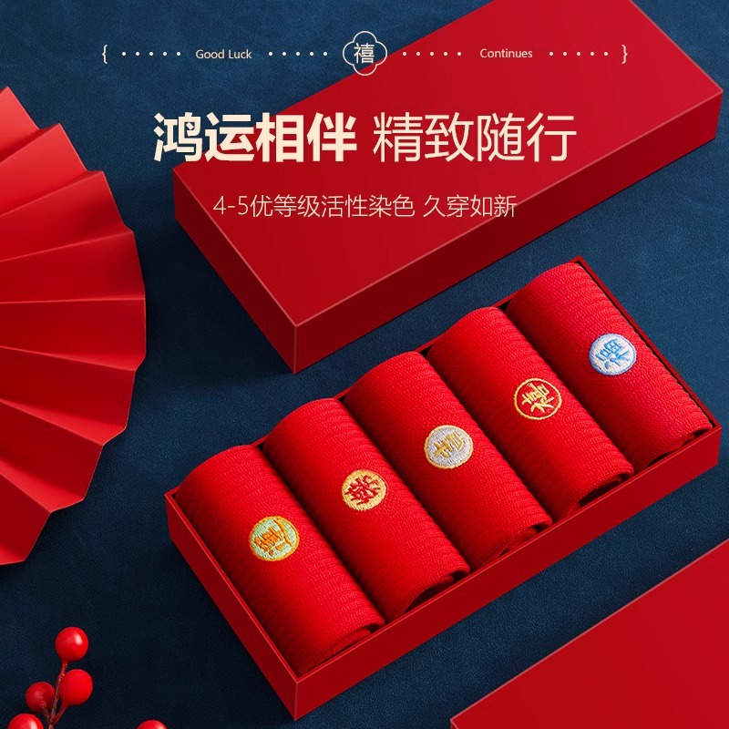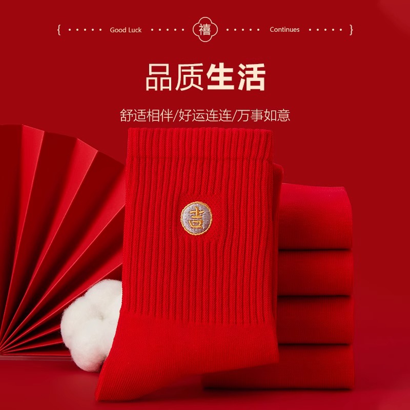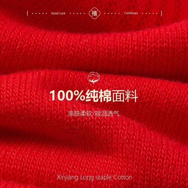 花花公子本命年袜子男女同款 红色纯棉中筒袜2025龙年情侣结婚礼物
