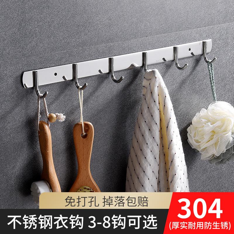 不锈钢免打孔挂钩强力承重粘胶厨房墙壁挂钩一排浴室门后挂衣钩子