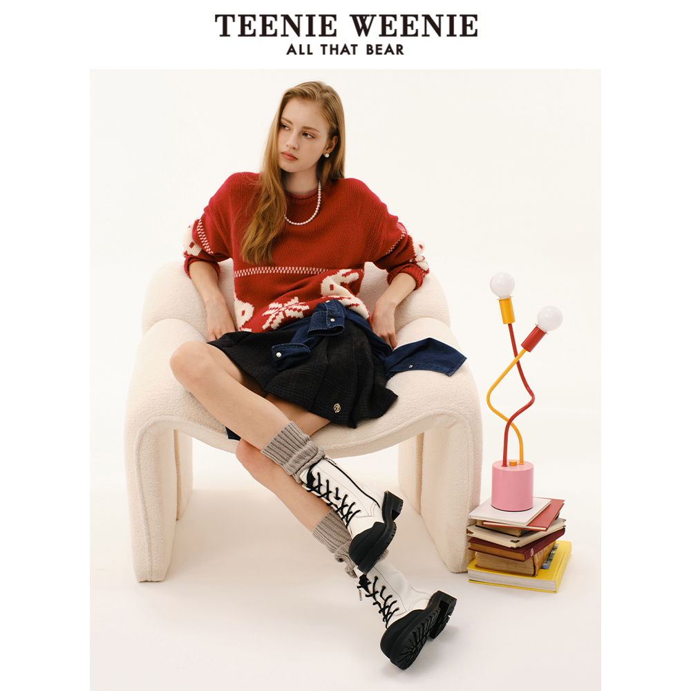 张凌赫周雨彤同款 百丽小野马英伦风靴子女冬加绒棕色马丁靴短靴预