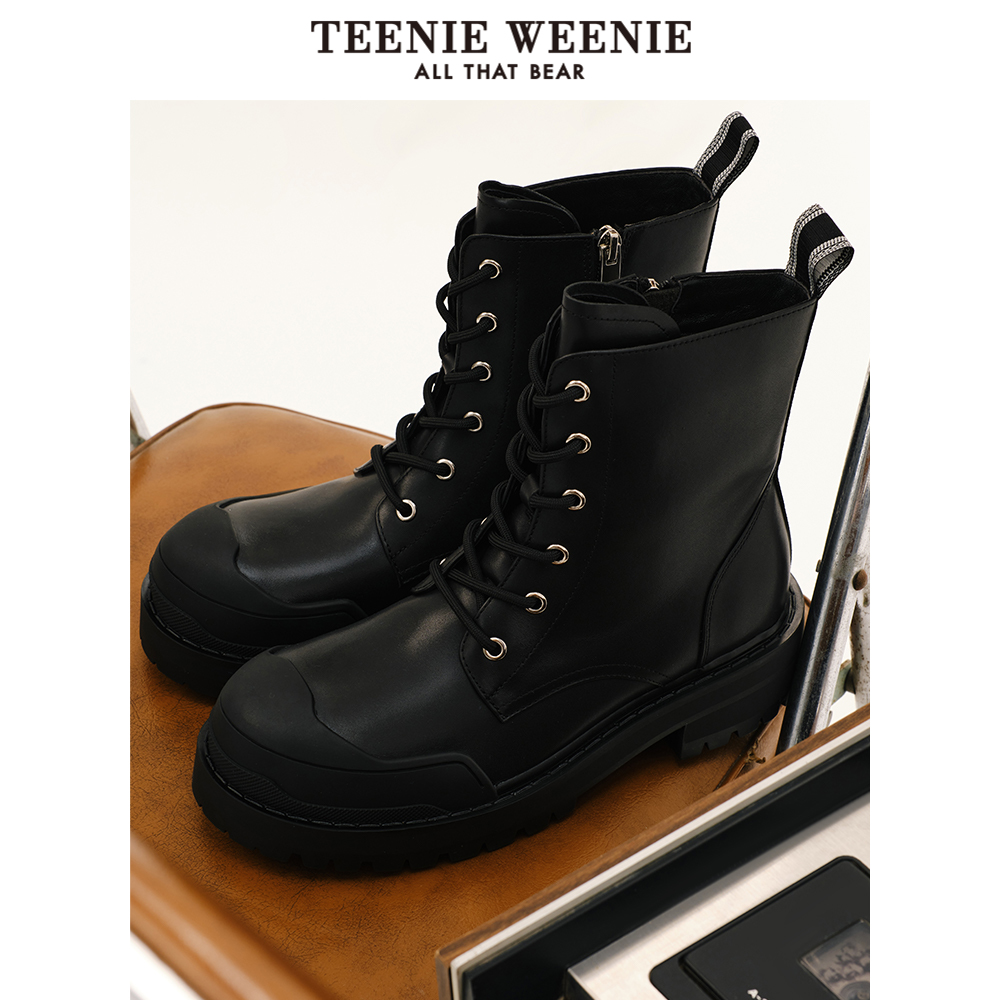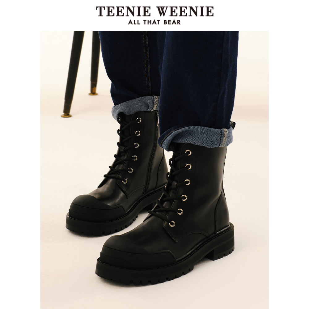 周雨彤推荐 百丽黑桃少女靴厚底马丁靴真皮加绒短靴子B8K1DDD4预