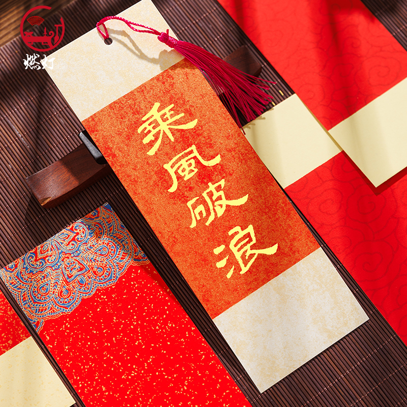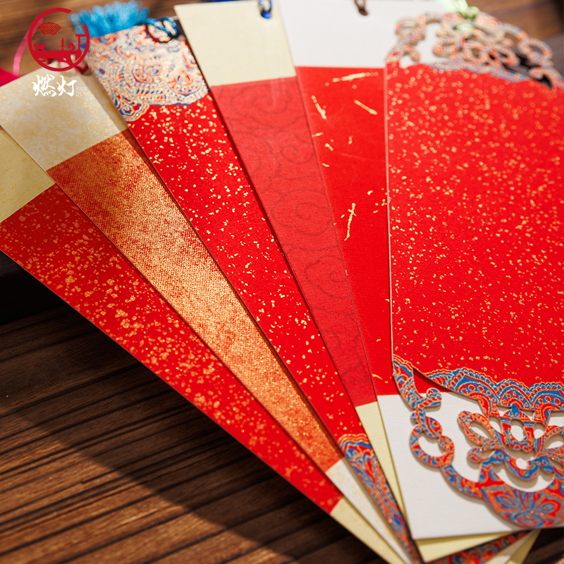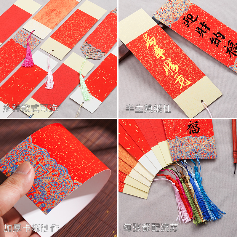 燃灯100张新年系列万年红洒金书签红色宣纸空白卡纸古风卡片红纸手写毛笔字新年祝福愿望福签祈愿蛇年春节