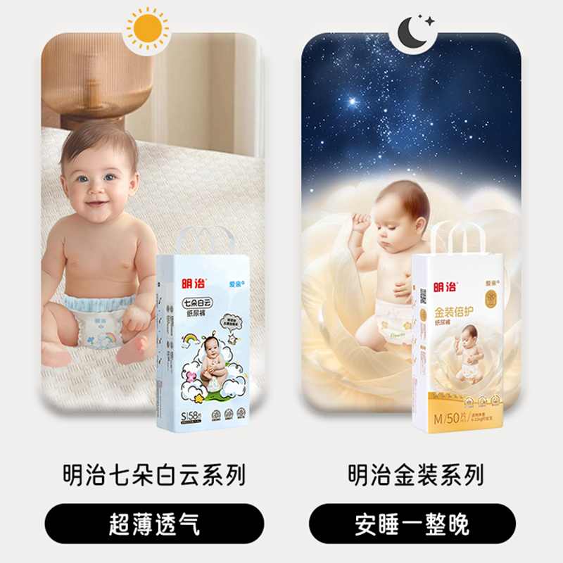 超薄透气男女宝宝尿不湿丝蛋白 升级版 明治七朵白云裤 型婴儿拉拉裤
