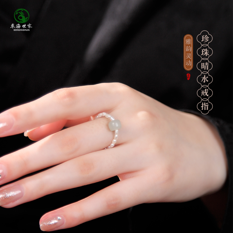 千蕊天然粉水晶戒指马粉大戒面男女款 中指食指水晶指环实物