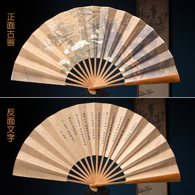中国风宣纸折扇古风男款 扇子国潮汉服折叠扇随身便携10寸竹扇 夏季
