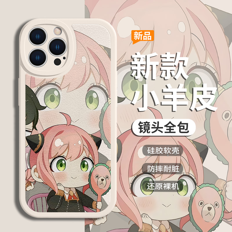 适用阿尼亚苹果14promax手机壳15情侣13新款 12mini次子11间谍过家家xsmax网红xr小羊皮iphone16plus套 二次元