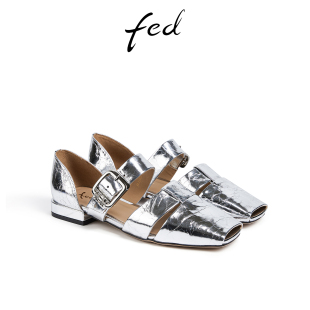 女鞋 真皮凉鞋 中空单鞋 fed银色玛丽珍鞋 D0420 新款 女款 YAB675 夏季