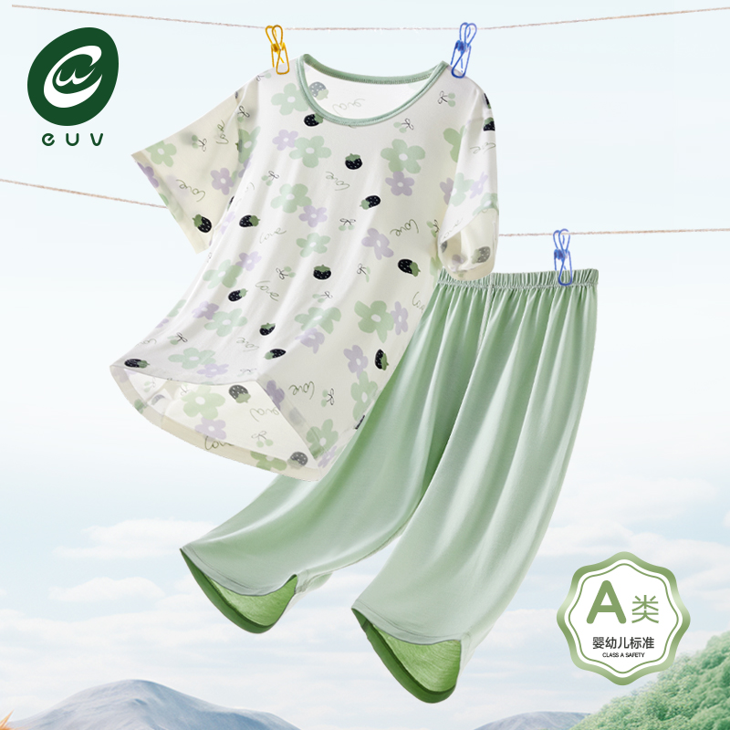 女童莫代尔睡衣儿童短袖 薄款 长裤 小女孩a类春夏季 家居服 套装 euv