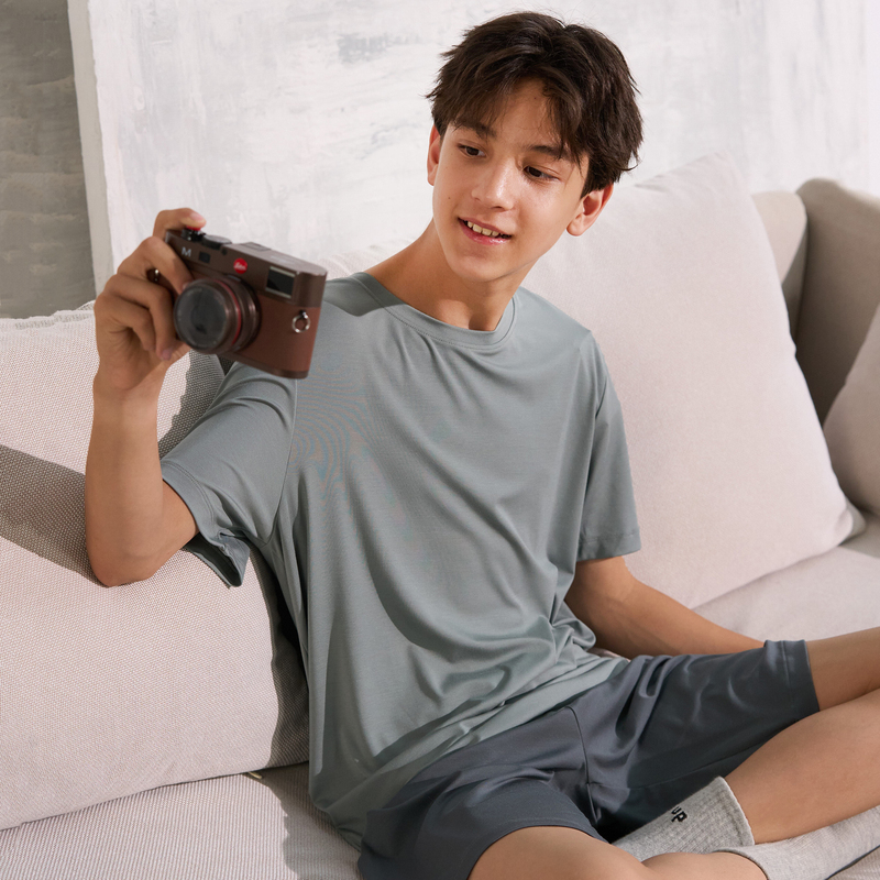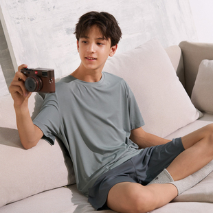 爱慕儿童青少年男孩短袖 兰精零莫代尔睡衣A类可外穿 家居服套装