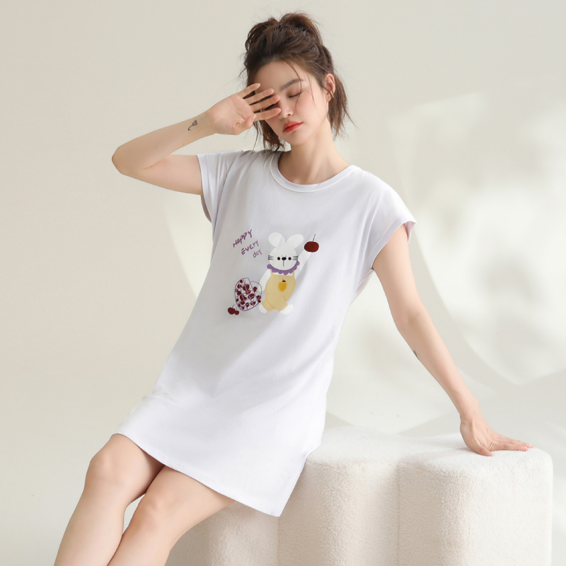 睡衣裙子 可爱印花宽松可外穿全棉短袖 芬腾睡裙女夏季 纯棉2024新款
