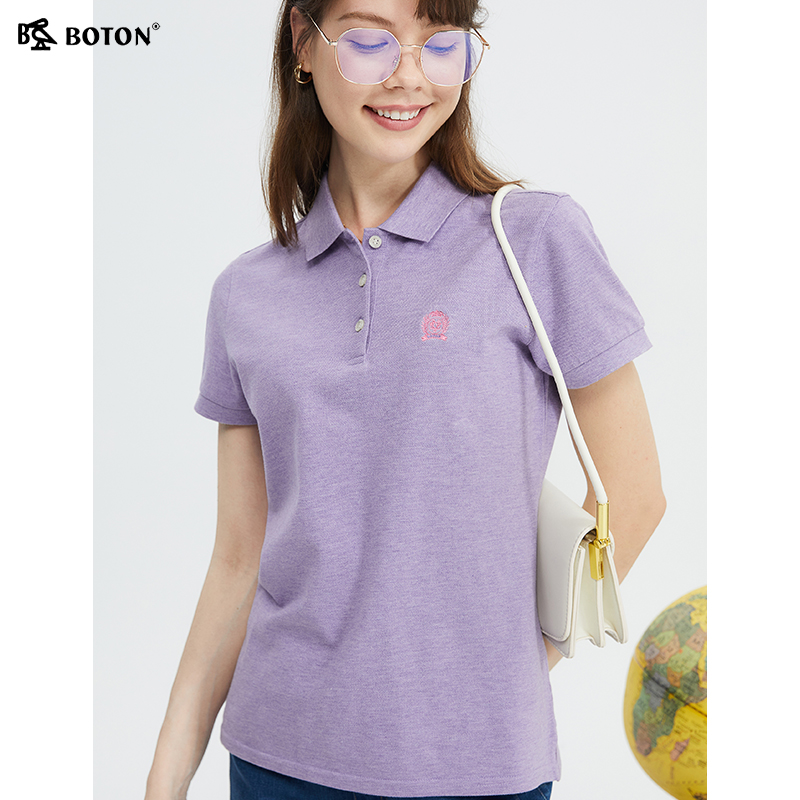 翻领休闲上衣05312790 纯棉双面布纯色气质长袖 佐丹奴Polo衫 女新款