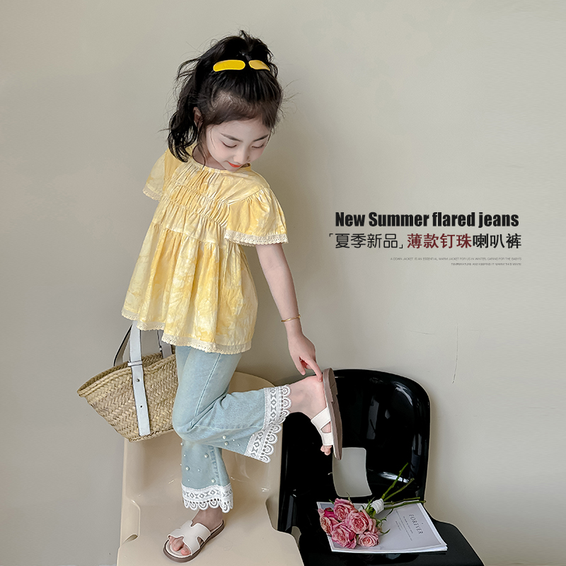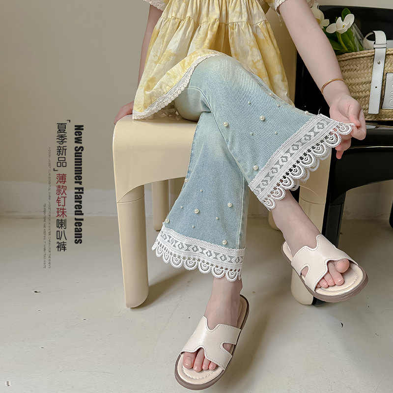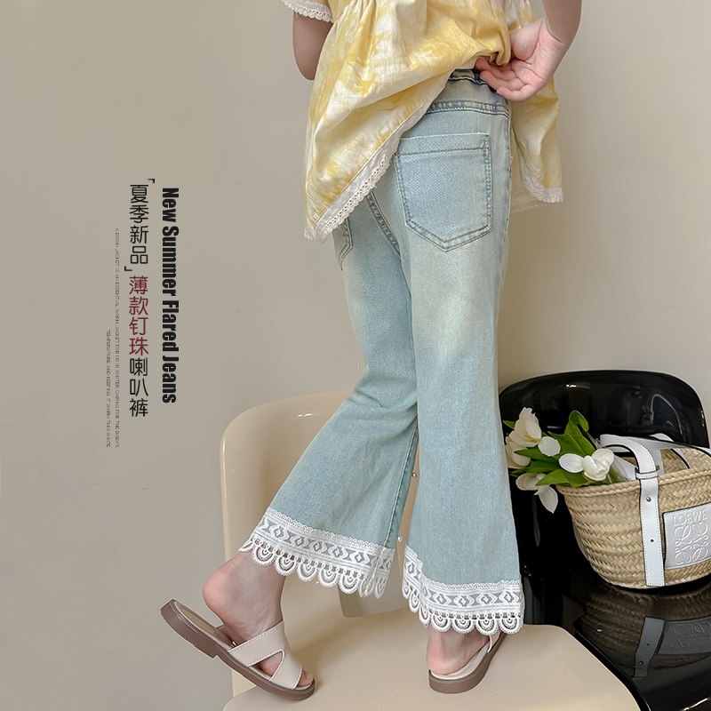 裤 女孩花边休闲喇叭裤 子时髦洋气儿童牛仔裤 2025新款 秋季 女童秋装