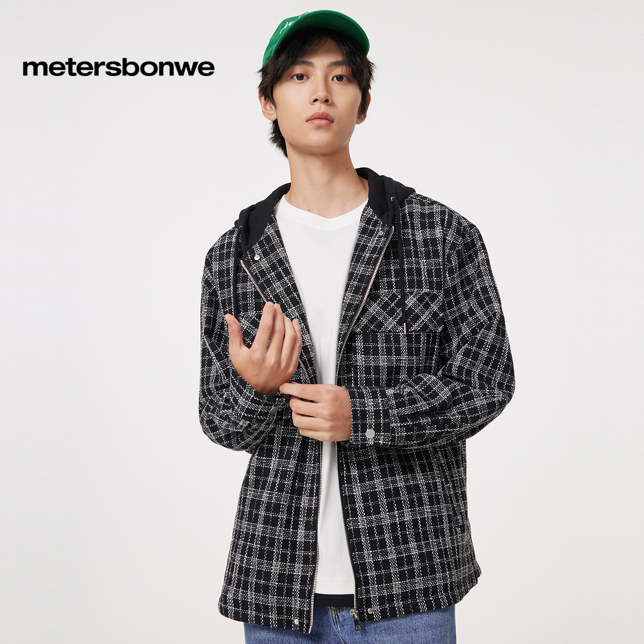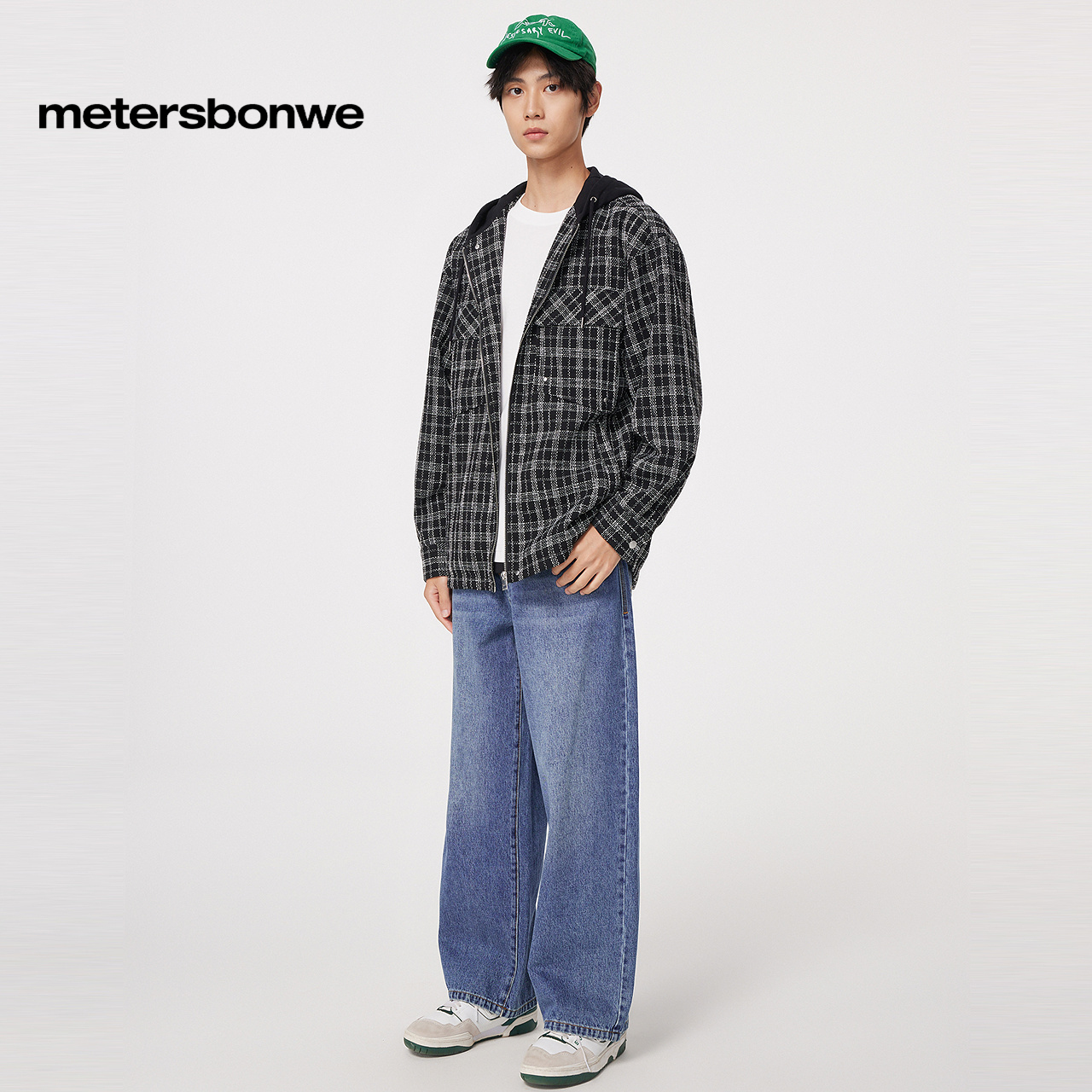 宽松上衣服MS 休闲男棋盘格牛仔夹克外套春秋男装 班尼路SK秋季 新款