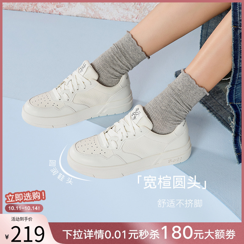 URJ01AM5 女休闲鞋 百思图2025春商场新透气厚底增高运动板鞋 熊猫鞋