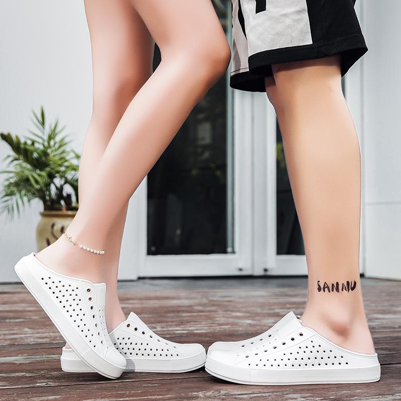 男款 涉水半拖鞋 夏季 软底包头凉拖海边沙滩鞋 白色 外穿情侣款 洞洞鞋
