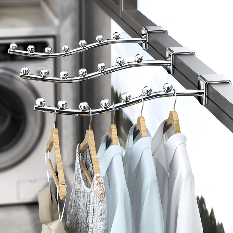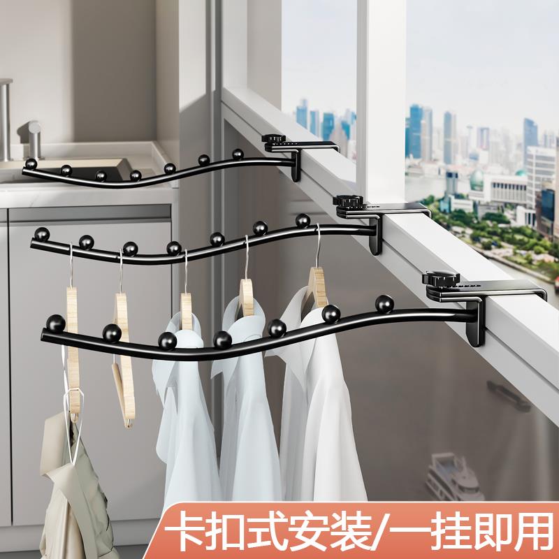窗宽晾衣架阳台防盗窗不锈钢护栏衣架挂杆宿舍床边挂钩家用免打孔