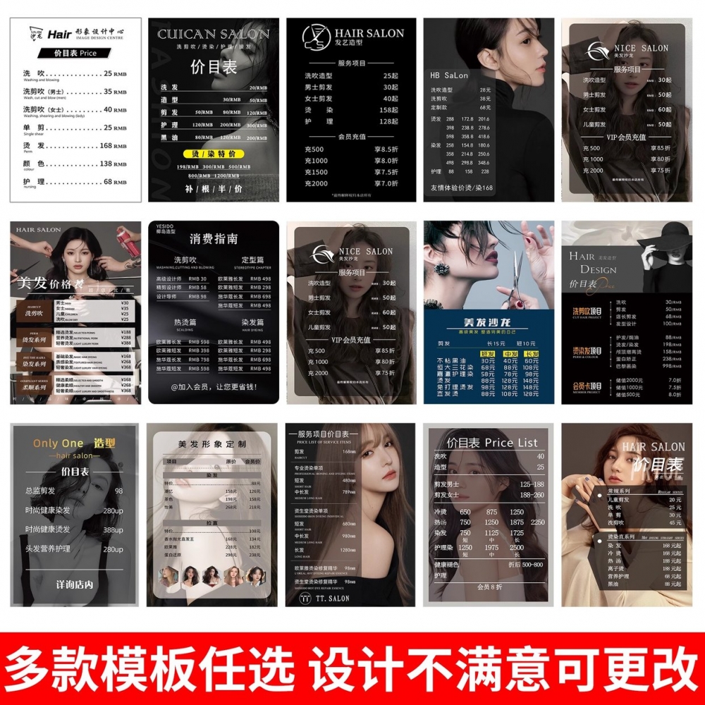美发店价目表定制理发店价格表挂墙沙龙美发海报墙贴亚克力发廊价目表美业价目表设计价格展示牌剪发价位标牌