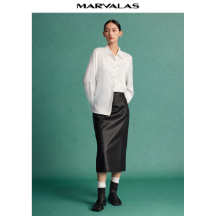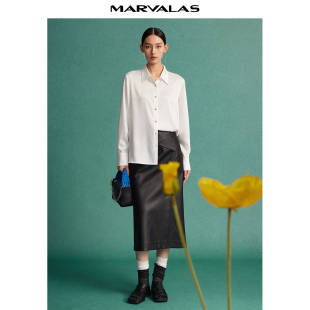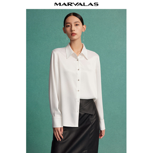 纯色本白优雅宽松慵懒镶钻领衬衣 新款 曼德诗气质醋酸衬衫 2025秋季