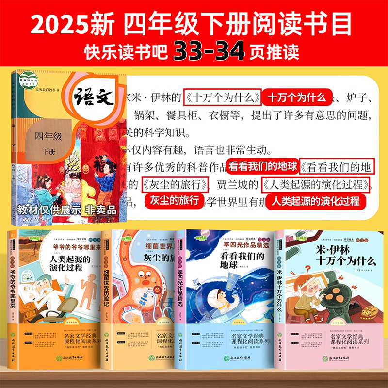 地球人教版 四年级下册快乐读书吧阅读课外书必读四下灰尘 演化过程看看我们 爷爷哪里来米伊林十万个为什么人类起源 旅行和