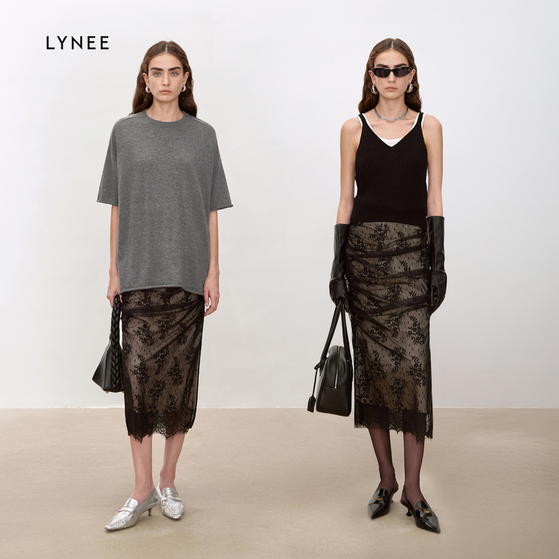 醋酸中长裙高级感裙子S 秋季 one more羊毛深灰色半身裙女2025新款