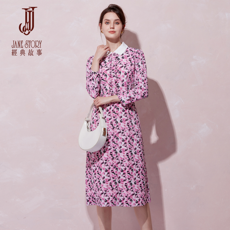 新款 裙子女夏季 宽松立领紫色连衣裙女18465209 佐丹奴短袖 设计师款
