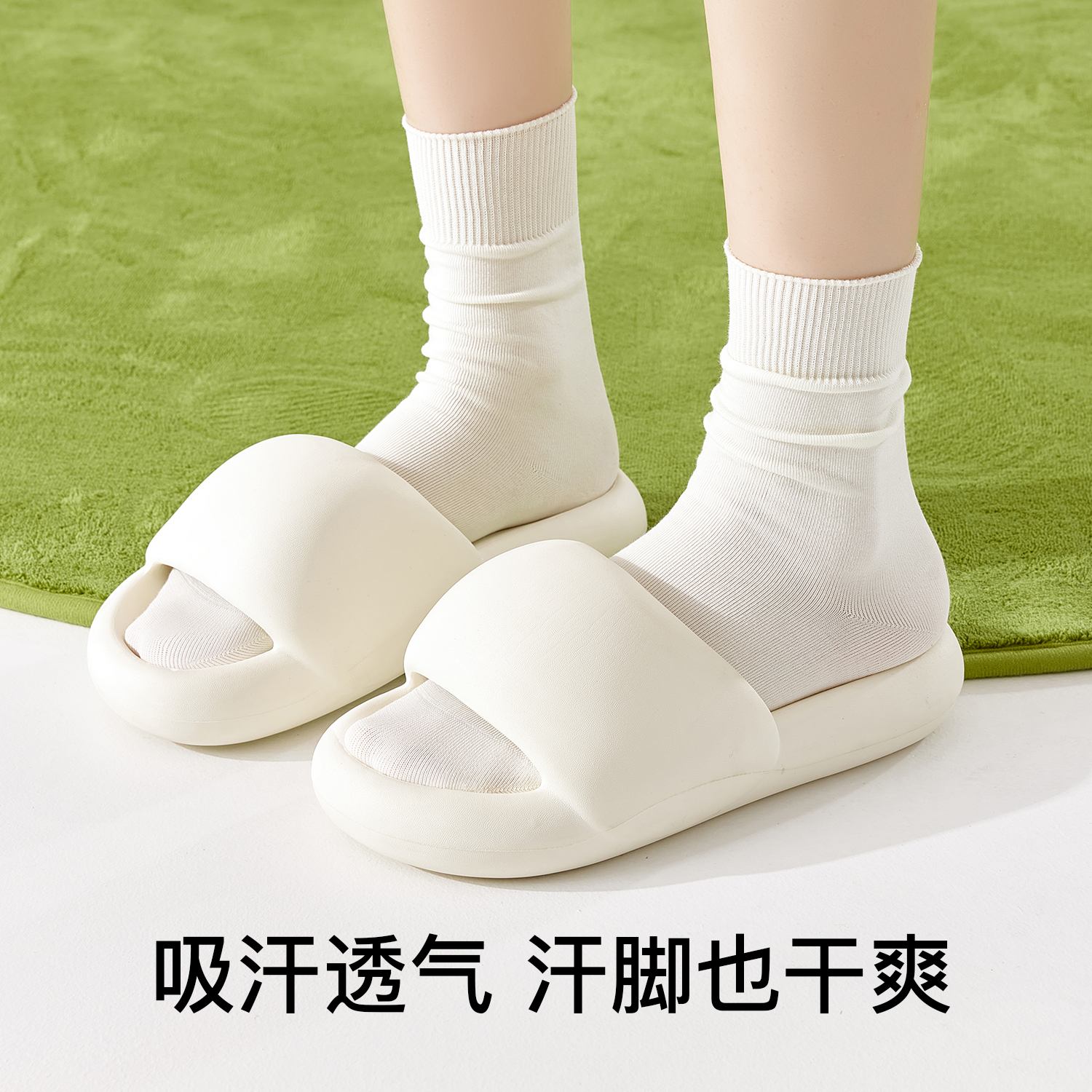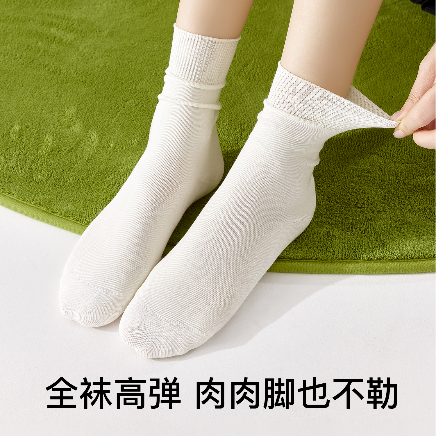 无骨松口长袜 配小皮鞋 黑白色袜子女纯棉堆堆袜中筒春夏季 2025新款