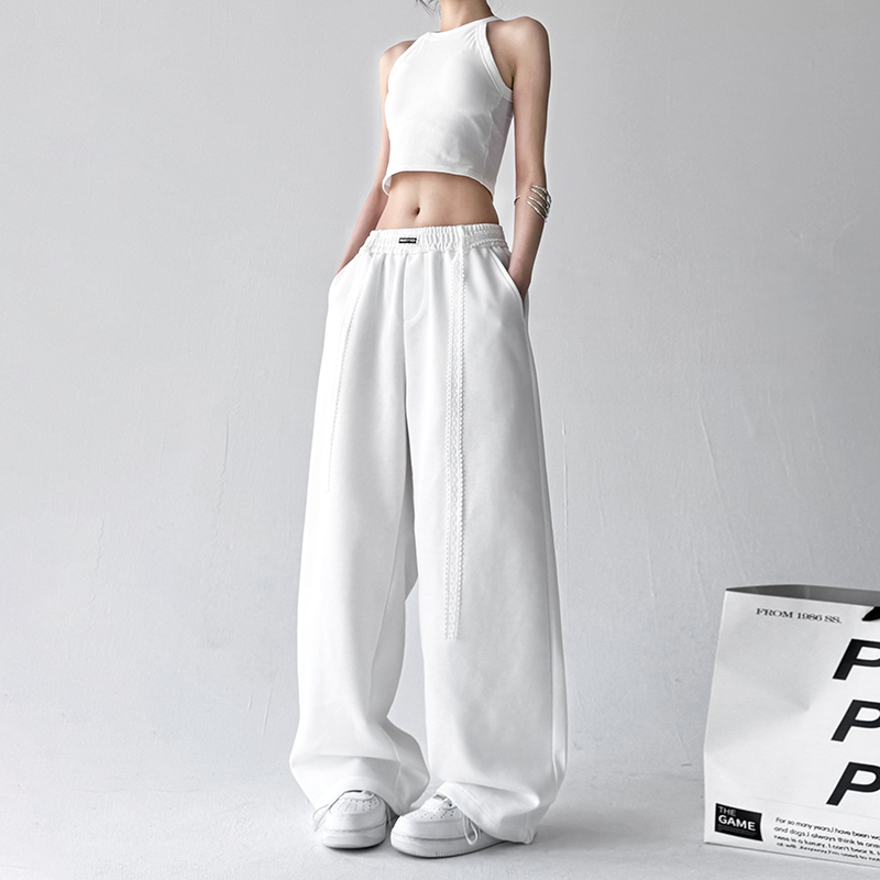百搭抽绳显瘦高腰遮肉运动风垂感阔腿长裤 新款 女2025秋季 卫裤