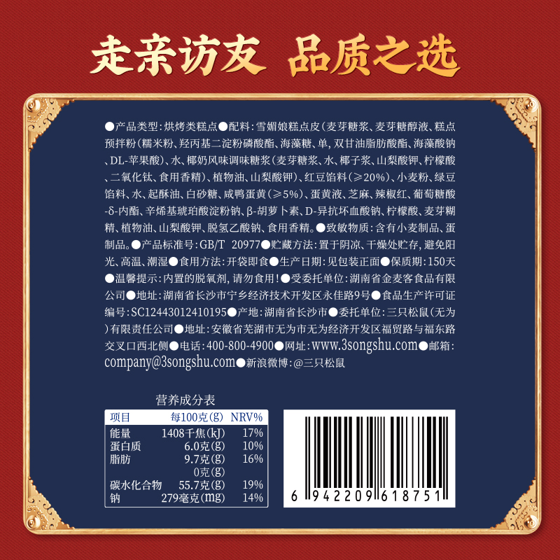 传统糕点过节送礼盒ss 三只松鼠_蛋黄酥礼盒800g