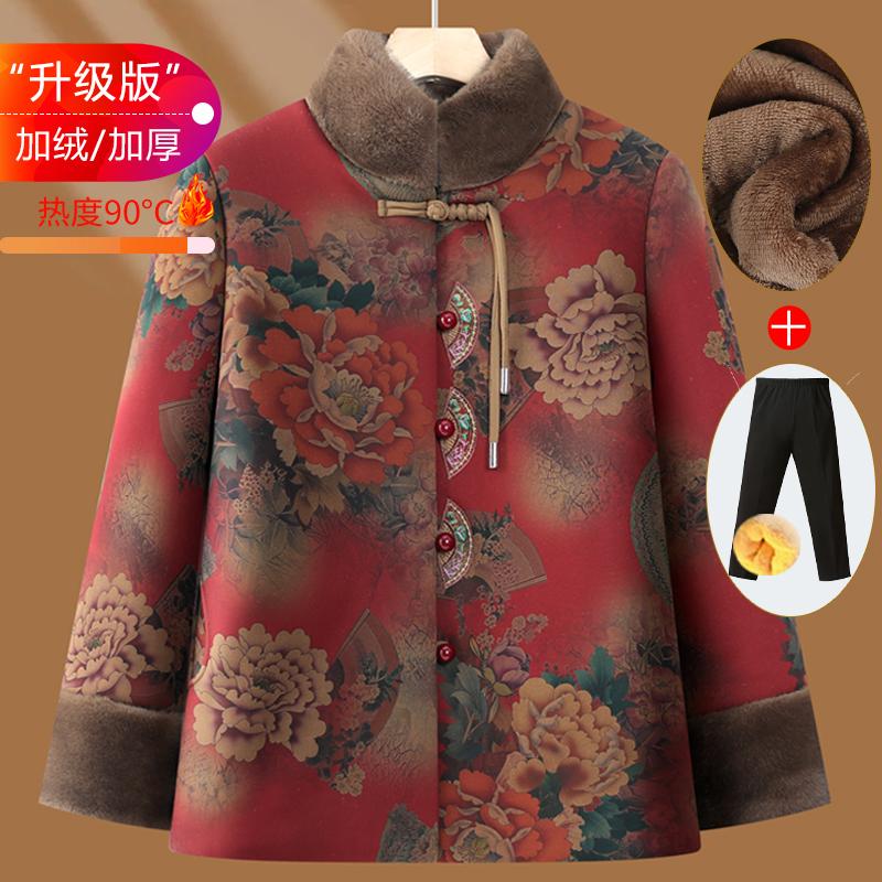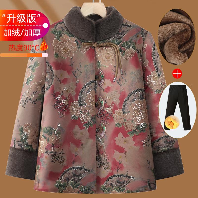 加绒棉衣外套老人6070奶奶装 冬装 婆婆冬加厚棉袄 妈妈装 中老年女装