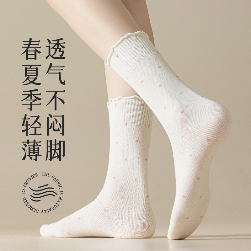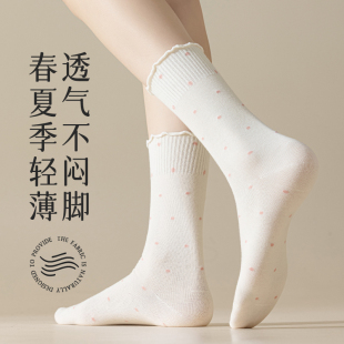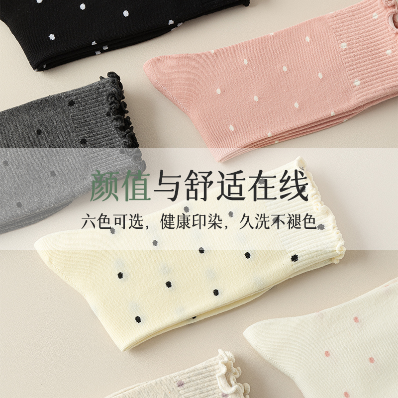 袜子女春秋款 网红少女miu系波点木耳花边堆堆袜 中筒袜2025年新款