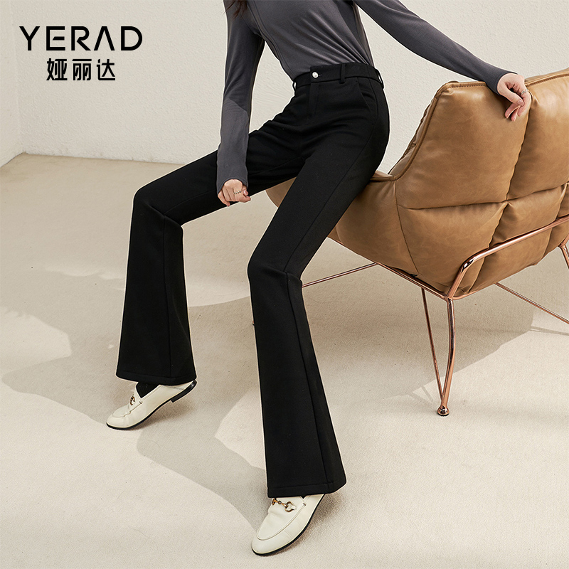 新款 子黑色羊蚕微喇裤 加绒喇叭裤 弹力裤 女小个子休闲裤 娅丽达冬季